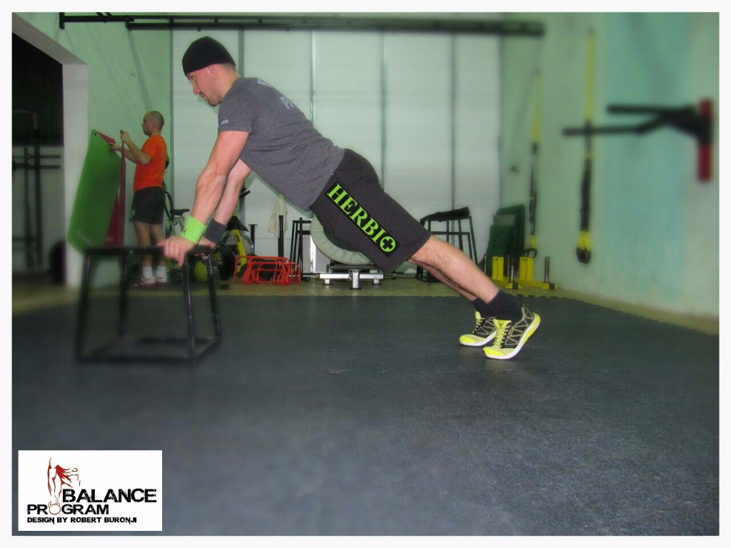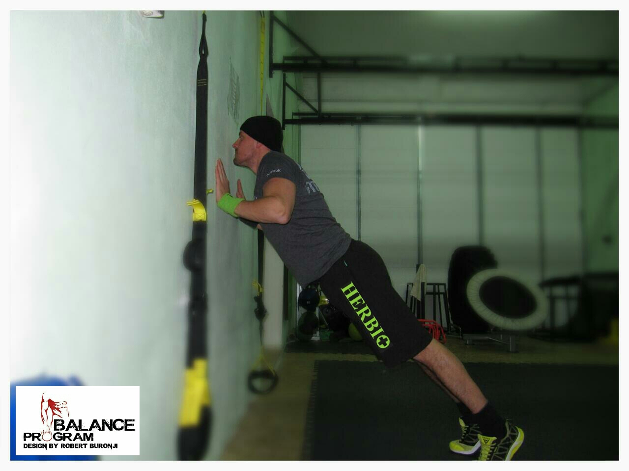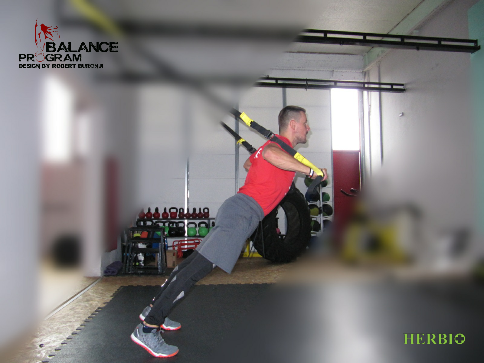 Ova varijanta se možete izvoditi bilo gdje gdje možemo zakačiti TRX suspenzijske trake. Ovdje težinu ili jačinu opterećenja određujemo na način koliko daleko postavimo stopala od pozicije ruku, tj.ako su vertikalno ispod nas biti će nam lakše i suprotno, što su više pozicionirana horizontalno biti će teže. Također je prednost što se možemo zadržati duži period , tj. proći veći dio navedene progresije na način da kada pokret na određenoj visini nije više dovoljno zahtjevan, spustimo niže i tako sve do potpuno vodoravne pozicije tijela. U ovom slučaju je dodatan naglasak na stabilnost cijelog tijela jer se radi o trakama koje zahtjevaju dodatan angažman u navedenoj sposobnosti. Naglasak na već navedenu pravilnu izvedbu pokreta i pripaziti da na preveliko širenje laktova što je česti slučaj.